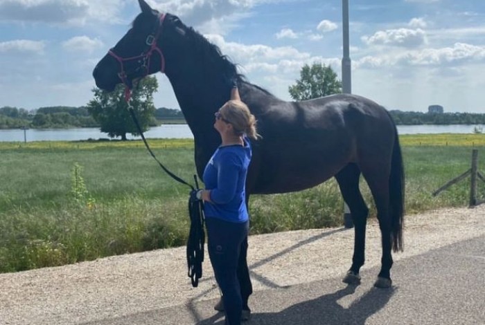 Pebble kwam in de winter van eind 2020 als 4-jarige bij Remonte in training en is midden 2021 zadelmak en lekker doorgereden, naar haar eigenaresse gegaan. In de afgelopen 3 jaar heeft de eigenaresse lekker met haar gehobbeld, geknuffeld en heeft ze stiekem niet zo heel hard hoeven werken. Dat heeft ongelooflijk goed uitgepakt voor dit paard! Ze heeft tijd gehad om goed te kunnen uitgroeien. Ze is nu een volwassen, uitgegroeid paard van bijna 1,80! Groot, maar met een hart van goud.